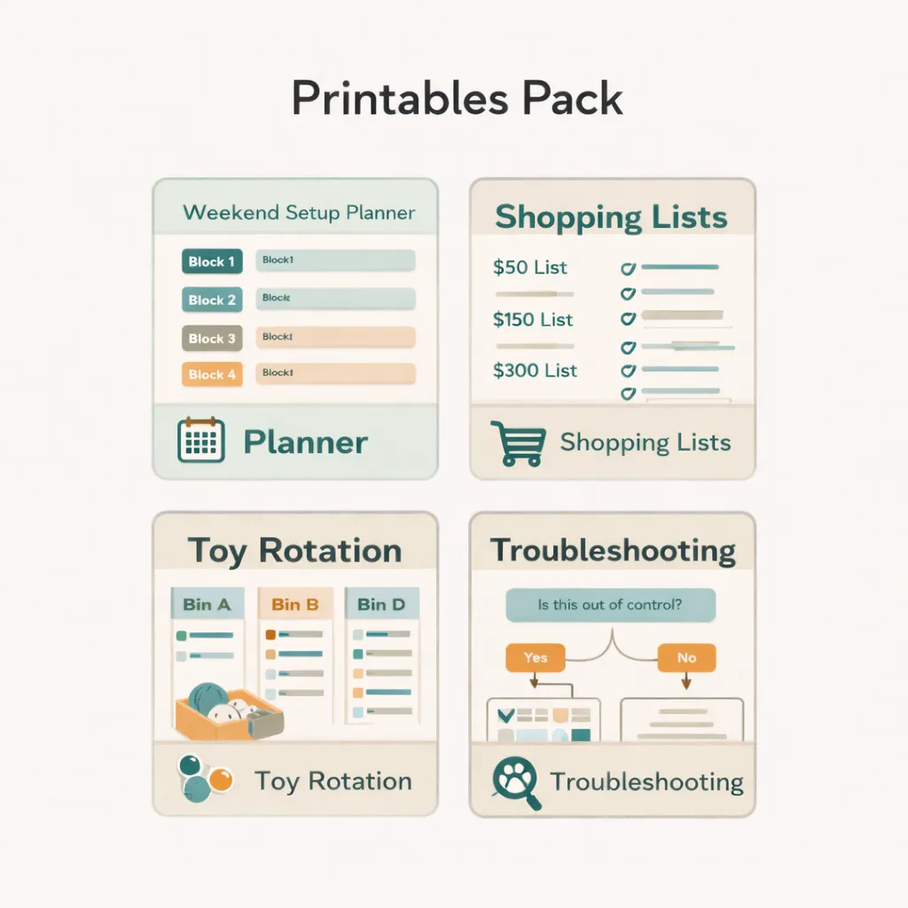 I didn’t want to drill anything (deposit stress), so I followed the weekend plan and set up the vertical route + scratch zones exactly like the templates. The biggest surprise was how quickly the 10-minute routine calmed the nighttime chaos.